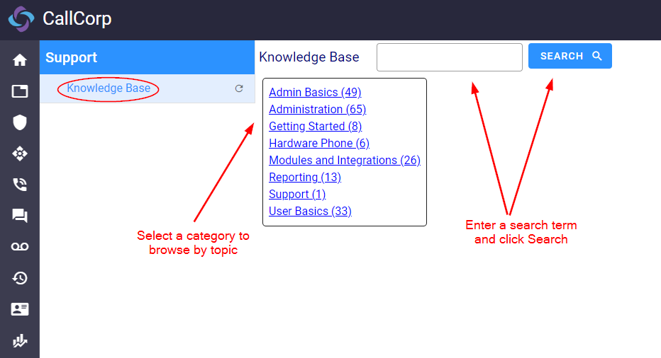 The CallCorp Contact Center knowledge base is a great way to quickly find answers to many of your support questions.